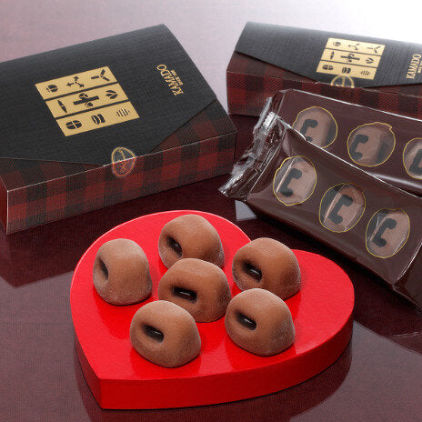 自信を持ってお勧めするバレンタインの一押し商品です。しっとり炊き上げた生地にチョコ餡を包みました。いつもと違ったバレンタインの贈り物に・・・