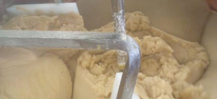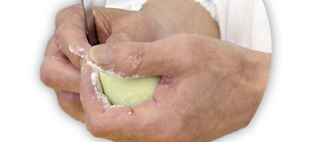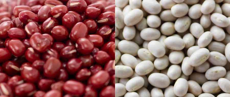 名物かまどでは、厳選された大手亡豆、小豆を使用しています。手亡豆は白いんげん豆の一種で白餡を作るのに使われ、手亡品種は栽培時に支柱(手)を必要としない事から「手亡」と呼ばれる様になったと言われます。手亡豆の中でも大粒のものを「大手亡」と呼び、「名物かまど」の餡は、厳選した大手亡豆を使用しています。